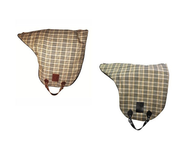 5/A Baker® Dressage Saddle Carrier is made with Original Baker Plaid, and trimmed with the finest quality leather. Traditional flat-type dressage style, with a curved zipper that runs along leading edge of saddle from billets to billets. Measures 30"W x 27"T.